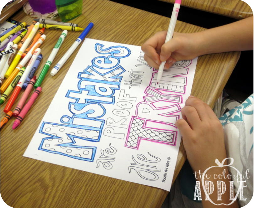 I had been on the search for motivational quote posters that were appropriate for my fifth graders. My second grade ones seemed too “little” for them and all I could find were ones that belonged in a high school classroom. Then I came across Doodle Art Alley. They have educational, motivational, and inspirational quotes “doodled” just waiting to be filled in. I found almost enough quotes for my entire class. I doubled up on my favorites.